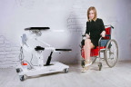 Доходя до конца лестничного марша, боковые подвижные колеса автоматически устанавливаются в положение, удобное для последующего ручного маневрирования на лестничной площадке.